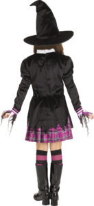 This School Girl Witch costume has everything a young enchantress needs for a stylish semester of sorcery! Featuring a plaid-accented dress with attached tie, pointy witch hat, striped socks, and adorable round glasses for that magical scholar vibe. Whether casting charms or brewing up mischief, she’ll be witching you were her!